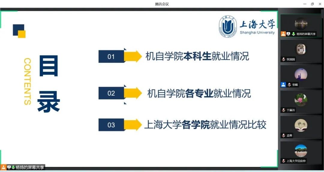 精机系、机自系、自动化系、电气系领导,无人艇研究院、新显中心负责老师依次介绍了本部门毕业生的就业情况,并交流了就业工作经验与典型做法,提出了未来的工作举措与重点推进方向。