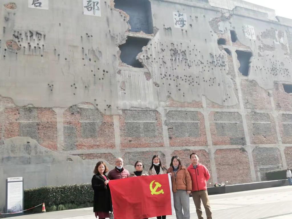 四行仓库建于1931年,位于上海静安区(原闸北区)南部,是一座钢筋混凝土结构的六层大厦。纪念馆内部基本还原了当年的原貌,保留了淞沪会战和四行仓库保卫战时期大量的历史报纸、图片、资料用品。仓库内部陈列着许多栩栩如生的蜡像,再现了八佰壮士在四行仓库奋战抗击日军的感人场景。在四行仓库纪念馆的西墙上,当年战争留下的斑驳弹孔和残缺的孔洞清晰可见,满是孔洞的墙面,仿佛把所有党员又拉回了那段可歌可泣的历史,每一块砖、每一寸墙面都透露着沉重的历史。让每一位党员同志深刻体会到今日的美好生活来之不易,是由万千革命先烈用血肉之躯铸就而来。