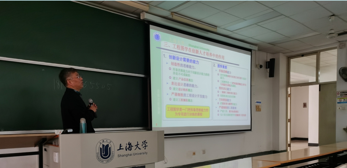 沈老师首先从现代工程图学的内涵,现代工程图学在人才培养中的作用,工程图学具有的交叉学科优势等方面全面系统地介绍了工程图学,使2020级分流进院的学生对工程图学有了更为深刻的认知。