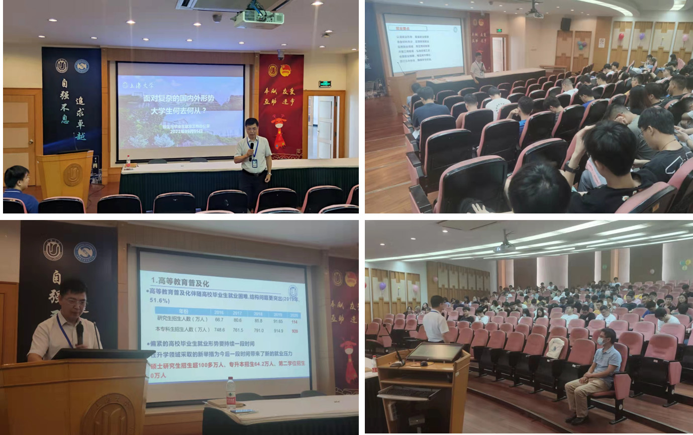 2021年9月5日,伴随着开学的铃声,18级精机系本科生首日教育在上海大学宝山校区J103顺利召开。为了使刚刚踏入毕业班的同学们更好地应对目前严峻的就业形势,在就业过程中少走弯路,我们邀请了校招毕办的傅新华老师,根据目前就业形势开展了关于就业的主题讲座“面对复杂的国内外形势,大学生何去何从?”