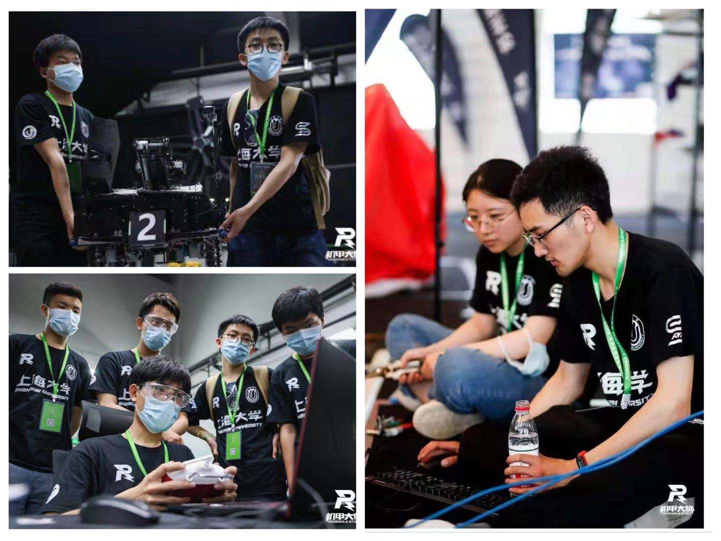 赛场回顾:5月25号,SRM机甲战队随大巴前往浙江杭州,进行适应性训练和比赛前的准备;5月27日,SRM机甲战队迎来了小组赛的第一场,对战国防科技大学,由于在许多关键技术方面与强校有一定的差距,最终输掉了这场比赛,晚上队员们都聚在一起进行比赛复盘,总结比赛遇到的问题,以及分析明天对战的战术;5月28日,迎来了小组赛的第二场,对战太原工业学院,这场比赛终于以战术优势成功拿下一分,最终以1:1平结束。当晚,学院学工主管、指导老师杨扬,指导老师崔泽、陈勇来到现场,鼓励队员们放下包袱,继续加油,取得接下来比赛的胜利;5月29日,小组赛第三场对战长安大学,SRM机甲战队稳定发挥,凭借着操作队员间的默契配合,以2:0战胜长安大学。同时在当天的步兵竞速与智能射击单项赛中位列第二。最终上海大学SRM机甲战队以总积分与太原工业学院并列,按照规则判定与超级对抗赛全国总决赛失之交臂,但在步兵竞速与智能射击单项赛中,上海大学SRM机甲战队以亚军身份成功晋级全国总决赛。