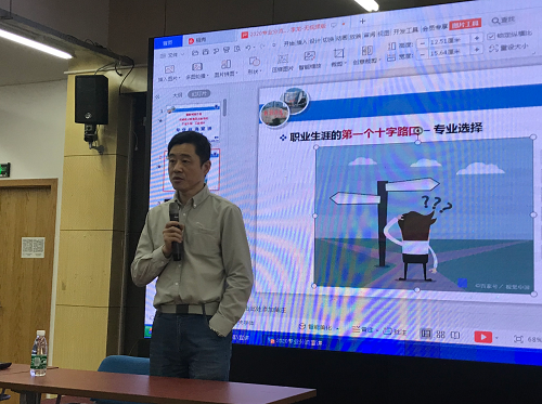 杨浩老师从自身教学和学生培养的经验出发,介绍了大学阶段科创实践能力培养对于物理类学生专业发展的重要性。杨浩老师指出,机械类学科发展与国家政策和市场需求紧密结合,“十四五”时期将拥有良好的发展基础和就业前景,而参加科创实践、竞赛是对学生综合能力提升的直接途径,既能巩固理论知识,又能在举一反三、创新开展专业课程学习方式上发挥作用。杨浩老师也向在场学生分享了机自系本科生的优秀科创作品,激励学生打好理论知识基础,有效结合自身兴趣与专业选择。