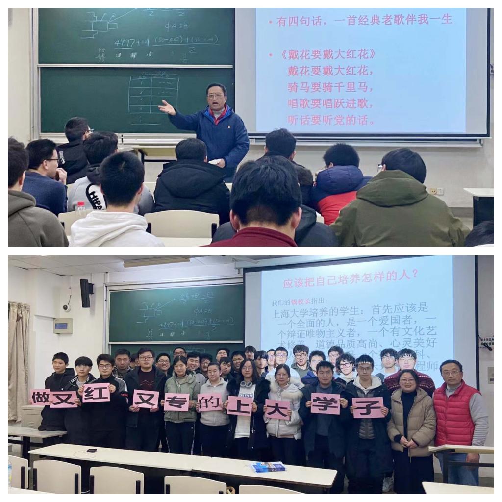 随后,黄老师围绕学校的人才培养目标——以钱伟长校长的教导“上海大学培养的学生,首先应该是一个全面的人,是一个爱国者,一个辩证唯物主义者,一个有文化艺术修养、道德品质高尚、心灵美好的人;其次,才是一个拥有学科、专业知识的人,一个未来的工程师、专门家”开题。结合自己的求学、工作经历,特别是指导学生科创的经历,进行了讲解。黄老师指出最重要的要“坚持”,坚持高标准要求自己——“戴花要戴大红花,要骑千里马,要唱跃进歌,要听党的话”。黄老师以“爱学生是老师的天职”为座右铭,几十年如一日,传道授业解惑。培养了一批又一批的优秀学子。