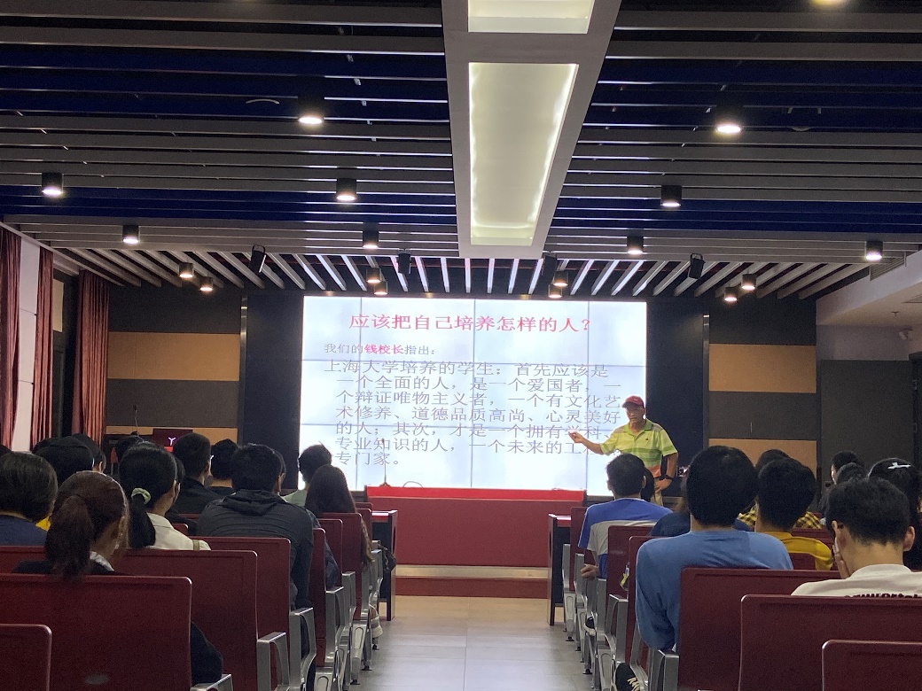 在各组队员招新宣讲完毕之际,黄慎之老师对此次招新活动进行了激情昂扬的演讲。他首先肯定了自强队是一个奋进团结的团队,更是一个弘扬雷锋精神的团队,才有今天大三大四的同学们放弃了休息时间,为宣讲积极准备,并以极其自信的面貌向学弟学妹们分享了他们的成长经历和收获。然后黄老师强调,上海大学自强队是上海大学的品牌团队,是培养工程师的摇篮。更以习近平总书记的教导激励学生,“青年兴则国家兴,青年强则国家强;要把课堂教学和实践教学有机结合起来。”黄老师以华为任正非的讲话:“自己家的鸡要在自己家下蛋”指出,自强队就是这样一支队伍,每年毕业的四个研究生总有一个人进入华为,甚至四个人中有三人进入华为,2020年6月毕业的研究生四人有一人进华为。自强队助力华为,我们可以自豪地说,华为的成长有上大人出的一份力,有自强队出的一份力,我们自强队要为国家培养需要的人才。最后黄慎之老师与同学们重温了钱伟长老校长的教育思想,钱校长指出:“上海大学培养的学生,首先应该是一个全面的人,是一个爱国者,一个辩证唯物主义者,一个有文化艺术修养、道德品质高尚、心灵美好的人;其次,才是一个拥有学科、专业知识的人,一个未来的工程师、科学家。”