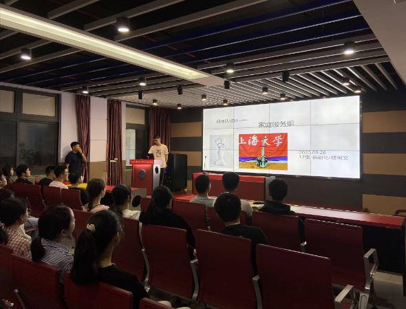 接下来,是由自强队四个组别:家庭服务机器人组、机器人仿真组、投篮机器人组、智能车组的高年级本科生代表,为低年级同学们详细地介绍了各组机器人的原理、设计、制作及播放相关视频。