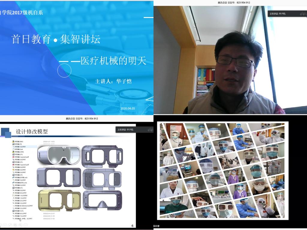 2020年4月5日下午三时,我院华子恺老师以“医疗器械的明天”为题,为17级机自系全体师生讲述了工程技术人员在抗击疫情中研发投产3D护目镜的经历以及医工结合的意义。