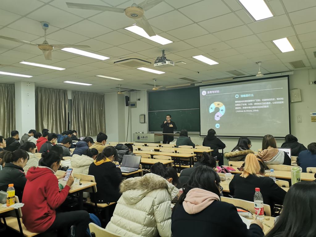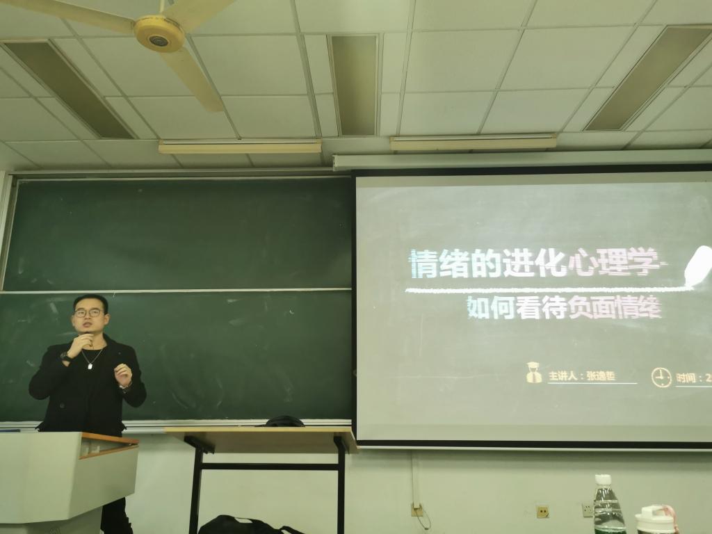 12月18日晚18:00在FJ203,上海大学心理中心张逸哲老师受邀为我院学生开展专题讲座。本次讲座的主题是 “情绪的进化心理学——如何看待负面情绪”,我院2019级三个直招班的90同学聆听了讲座。