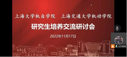 2022年11月17日上午,上海大学我院—上海交通大学机动学院研究生培养交流研讨会在乐乎新楼上善厅召开,我院于瀛洁院长主持,上海交通大学机动学院李玉阳副院长线上参会,我院党政领导班子部分成员、各系党政领导班子部分成员、研究生教学指导专门委员会部分委员、各系中心研究生教学主任和教学秘书等现场参会。