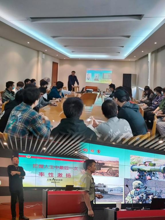 来自上海大学征兵宣讲团的彭文来同学讲述了两年的军旅生活和难忘经历,通过一张张照片介绍了自己军旅生涯的点点滴滴,分享了自己当兵这两年的感受,呼吁同学们响应国家号召,踊跃参军报国。
