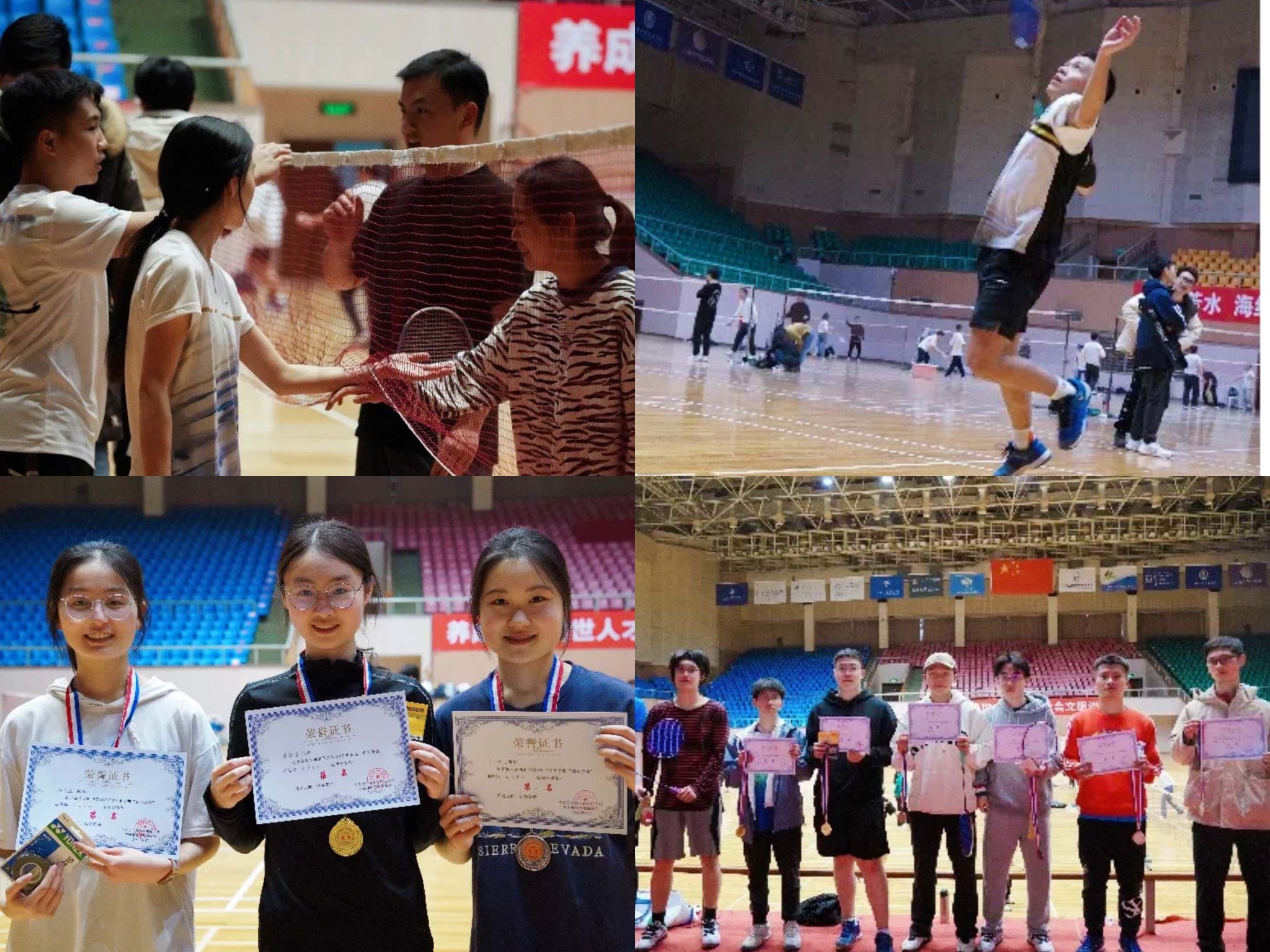 本次我院羽毛球赛共有七十位同学参赛,分为男子单打、女子单打、男子双打和混合双打(女子双打)四个项目。比赛场上无论是初次参赛的新生代选手,还是经验十足的卫冕冠军都全力以赴、奋勇拼搏,认真对待每一分,将初春的羽毛球馆营造出了盛夏的氛围。
