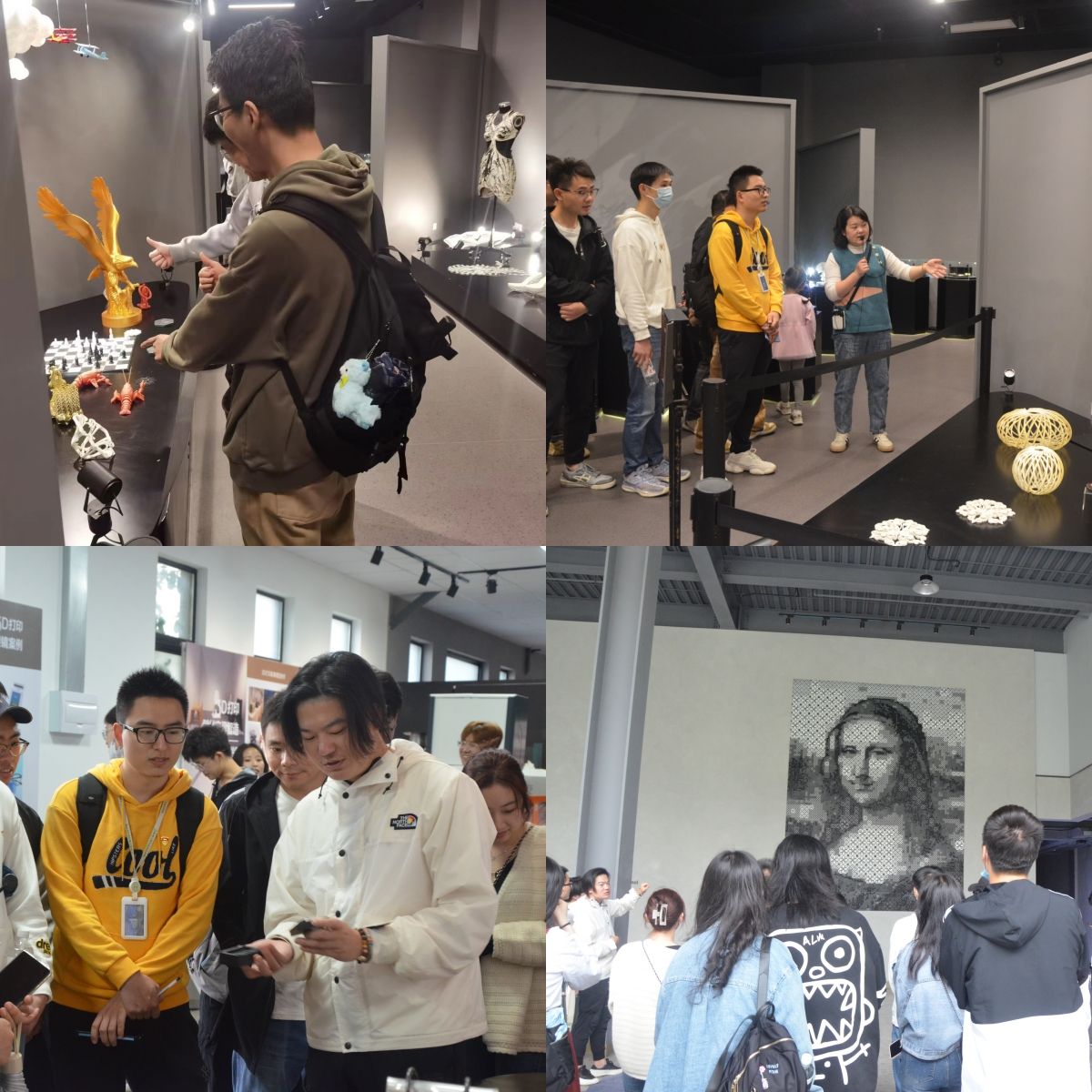 中国3D打印文化博物馆中陈列了2000余件3D打印作品,包括建筑模型、影视人物、精巧摆件等,同学们在被视觉震撼的同时也深切体会到中国制造的强大实力。在3D数智制造中心,同学们一同参观了3D作品制造车间,还细细观赏了全球最大的3D打印像素画——蒙娜丽莎,最新3D打印产品——阿迪达斯3D打印鞋底、定制车灯、3D打印桥、3D打印车、医疗模型等。同学们深入了解了3D打印技术的发展历史、工作原理及其相关应用领域,拓宽了就业思路,为职业选择提供了新思路。