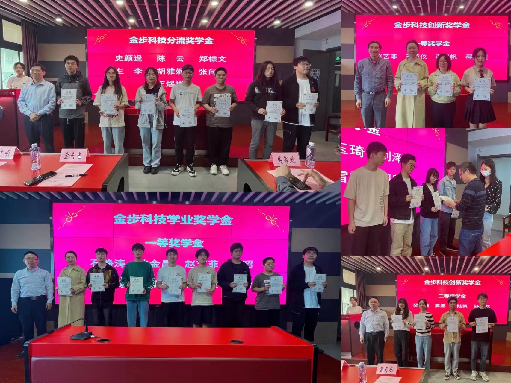 在主持人宣读获奖学生名单后,学院举行了隆重的颁奖典礼,金奇志校友、吴智政老师、王志明老师和郑华东老师分别为获奖学生颁奖。本次奖学金最终评选出35名获得者,其中金步科技分流奖学金7人、金步科技创新奖学金8人、金步科技学业奖学金20人,同学们用自己的优秀成绩和实际行动聚焦着闪闪发光的青春,践行着青年一代的责任担当。