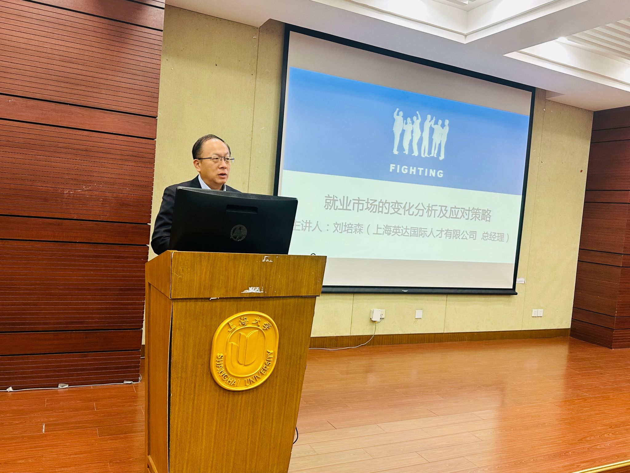 11月19日上午10:00,宝山校区蔡冠森讲堂举行了《集智讲坛第142讲:机械类就业市场的变化及应对策略》,本次讲座邀请到我院优秀校友、上海英达国际人才有限公司刘培森总经理,2020级精机系本科生参加此次讲座。讲座由马文静老师主持。