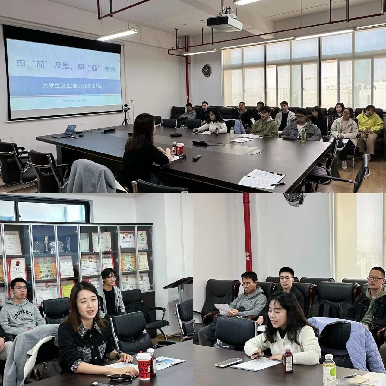 11月19日下午13:30,在宝山校区机自大楼1002会议室举行了《由“简”及里,职“面”未来——大学生就业能力提升训练》活动。本次活动由精机系本科生党支部、电气工程系本科生党支部联合发起,特别邀请到上海汽车集团股份有限公司乘用车分公司校园招聘HR杨美伊,零束科技有限公司校园招聘HR陈昭希,精机系党总支副书记马文静、电气工程系党总支副书记孟蓉出席本次活动。