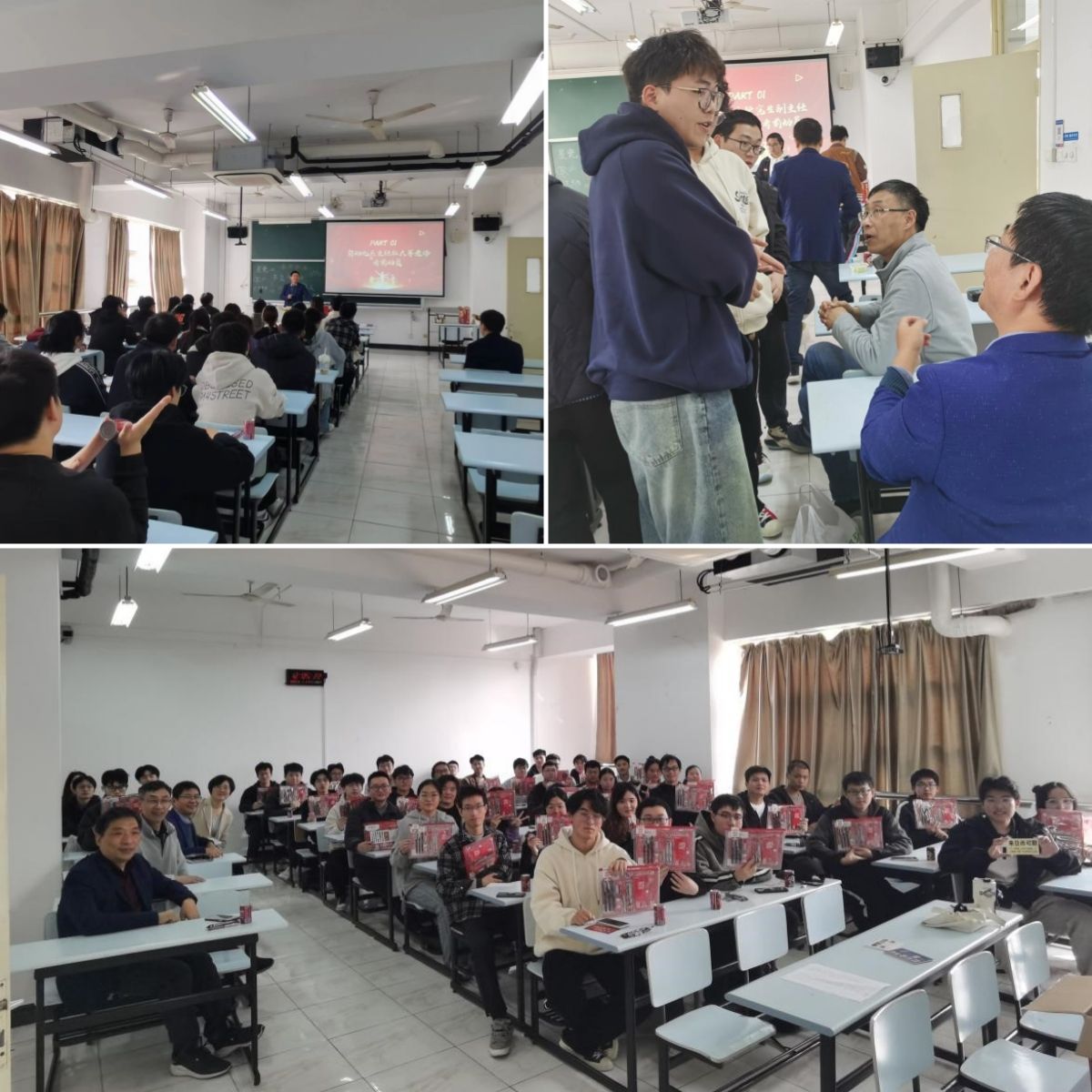 最后,老师们亲自为学生分发考研加油大礼包,并且进行了合照留念。希望同学们尽快树立理想,端正态度,用恒心与信心积极面对考研,以“乘风破浪,横渡沧海”的无畏决心与精神力量,早日到达理想的彼岸。衷心地祝愿大家百尺竿头、更进一步,并期待大家马到功成、梦想成真!