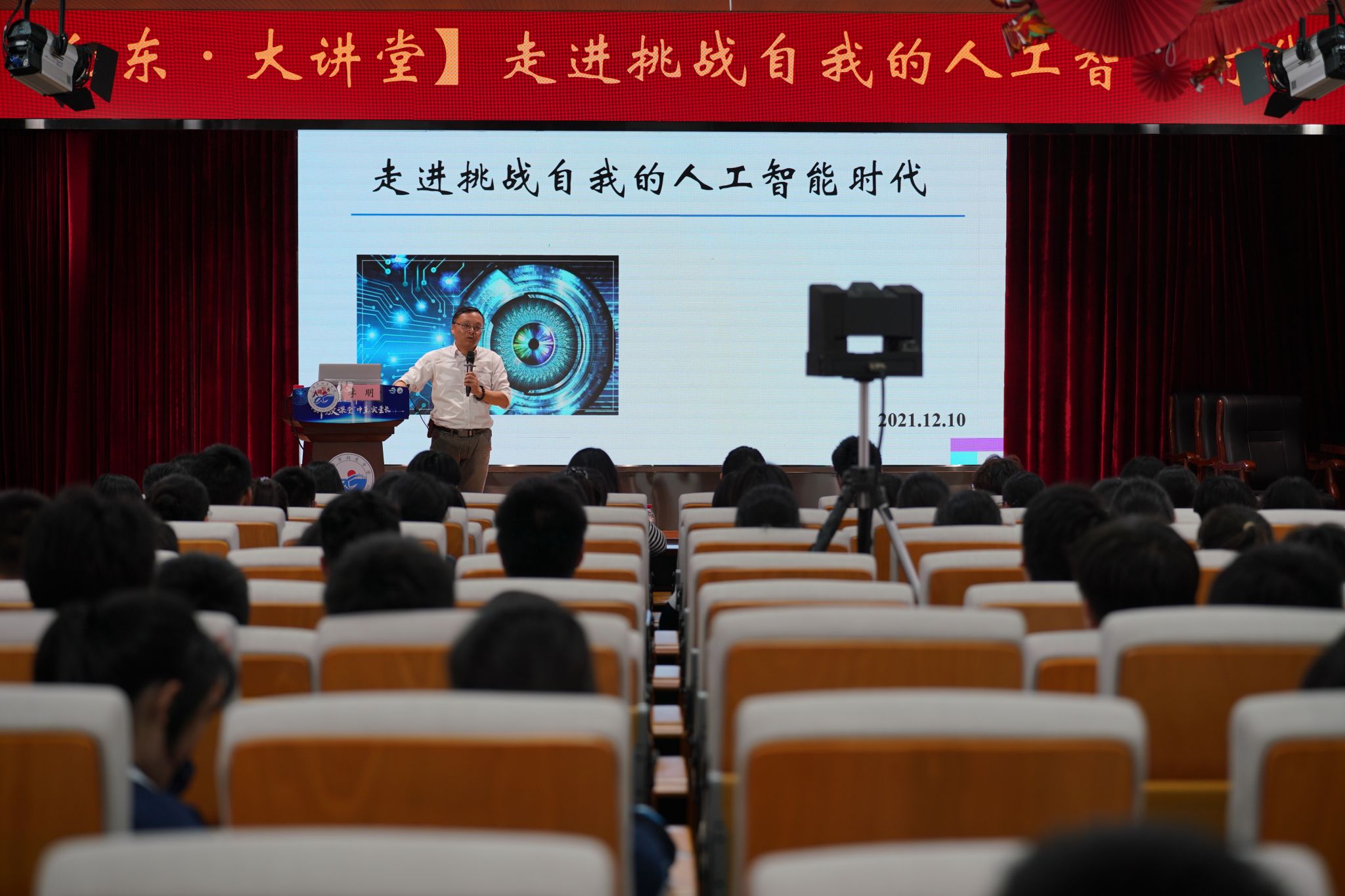 首先,我院教授、博导李明老师受邀开展题为《走进挑战自我的人工智能时代》的主题讲座。李老师以人工智能在生活中的应用为切入口,深入浅出地向在座同学介绍了人工智能和机器人技术的研究和发展、人工智能时代的工程伦理、挑战自我中的主动进化等详细内容。并引导同学们思考树立远大的理想、练就超凡的自我学习和持续的创新能力,用智慧拥抱人机共存的时代,迎接未来。随后李老师与同学们进行了轻松又热烈的互动交流。