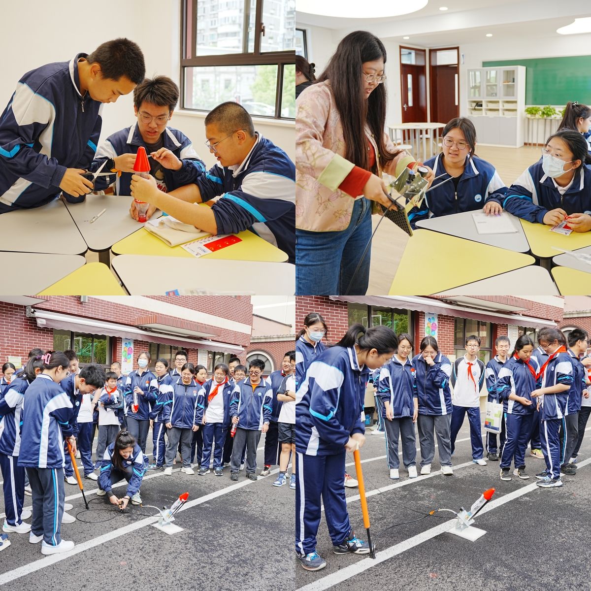 在实践操作环节,我院为同学带来了“水火箭制作培训”。通过生动的视频教学资料和现场细致的讲解,逐一指导每组同学完成一级水火箭的制作。制作完成之后,同学们进行试发射。十几米的发射距离引得在场同学惊叹阵阵,掌声连连。活动现场师生笑声、掌声不断,整个操场洋溢着欢乐的氛围。