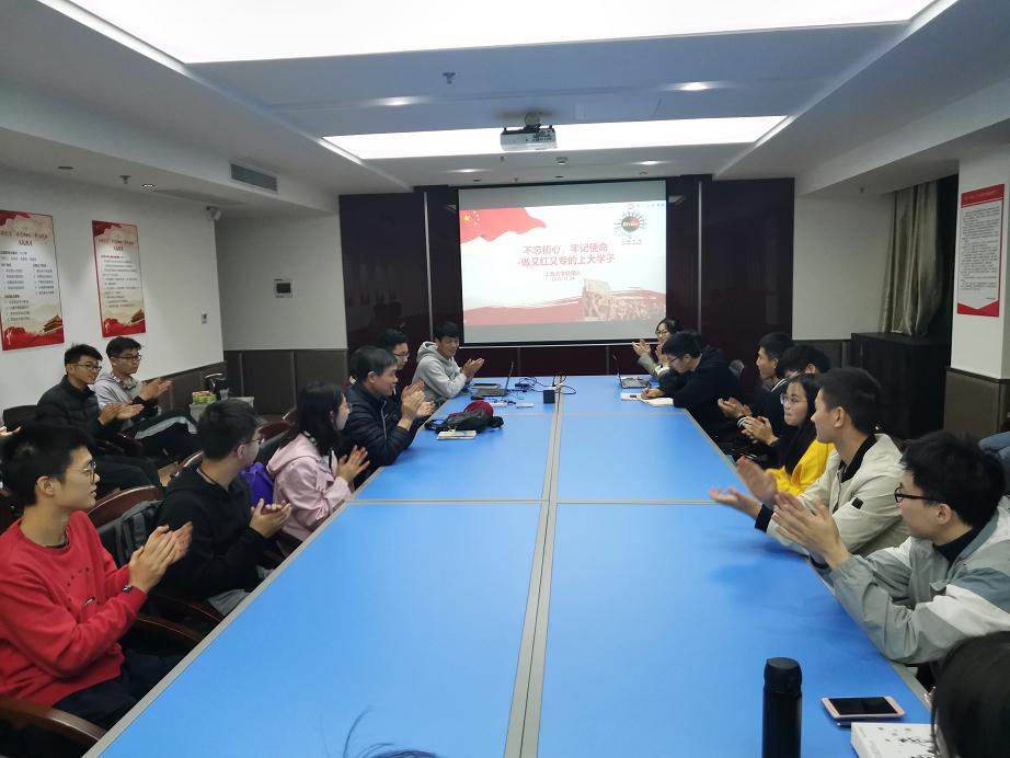 11月24日,即冬季学期首日教育日18:30,在宝山校区机自大楼604会议室迎来了自强队临时党支部的特色活动。本次活动将“不忘初心,牢记使命,做又红又专的上大学子”的主题贯彻始终,以弘扬民族精神与爱国情怀,加强爱国主义教育,并提升自强队队员的政治素养。参会人员有我院团委书记邱之卯,自强队指导教师陈万米、黄慎之以及自强队部分核心成员四十多人,活动由自强队临时党支部书记高洋主持。