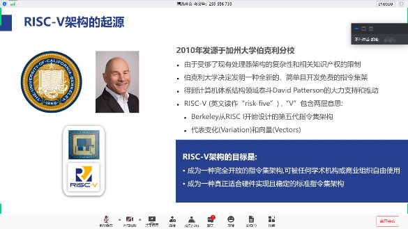 之后上海酷芯微电子有限公司视觉部门经理沈沙以“深度学习AI芯片”为主题向同学们介绍了集成电路产业目前关注的前沿与热点。芯来科技(武汉)有限公司创新生态与校园计划技术经理胡灿以“RISC-V MCU”为主题向同学们介绍了RISC-V架构的起源、特色以及设计哲学。两位专家的介绍带给了学生很多收获。