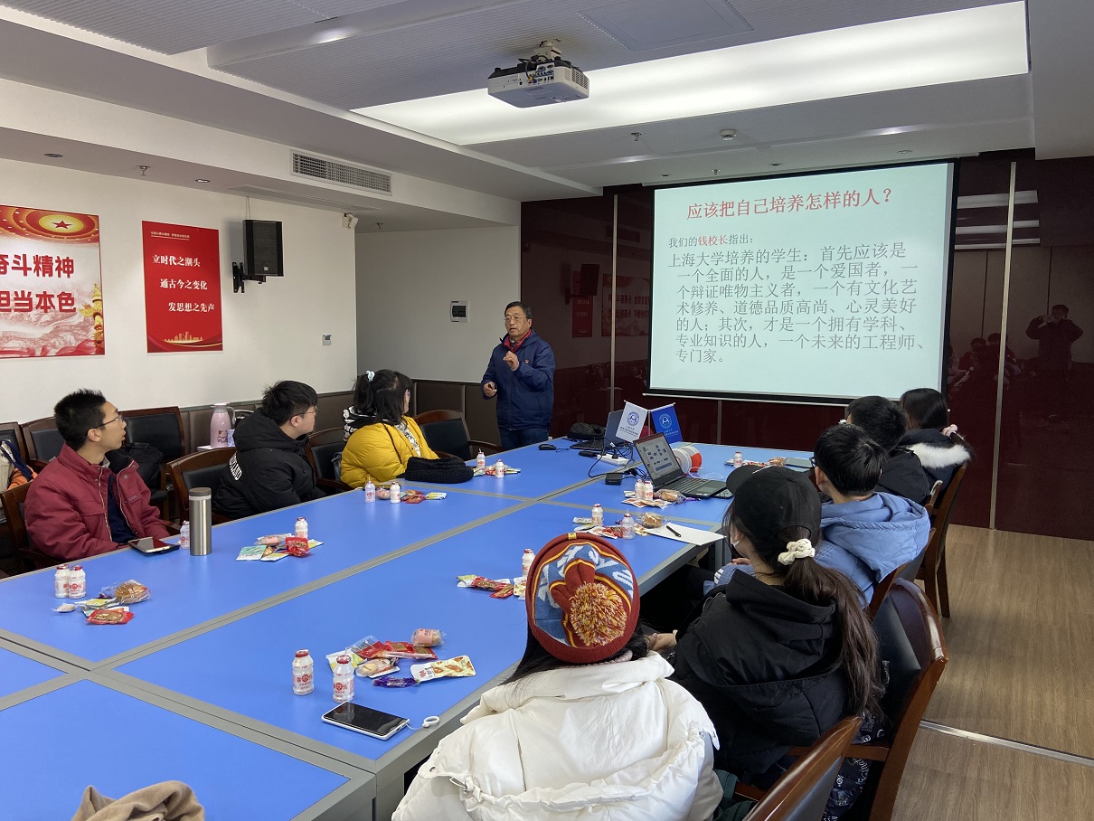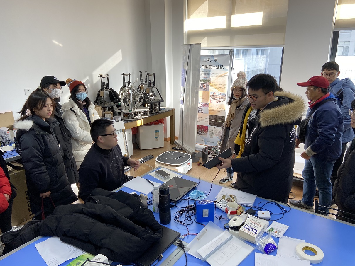2020年12月31日下午,为了进一步增进师生之间的交流,发挥优秀导师学长的示范引领作用,在学院领导的关心与支持下,由上海大学本科生学业发展指导中心主办,我院学业与科创发展中心承办的“把握现在,迎接未来”不亦乐乎下午茶活动在机自大楼学院会议室604室举行。我院自强队受邀参加了此次活动。出席本次活动的有学业与科创发展中心指导老师、辅导员张峰,自强队指导老师黄慎之,自强队部分核心队员以及积极报名参加此次活动的大一大二学生。此次活动内容分为学业指导与科创交流参观两个环节。