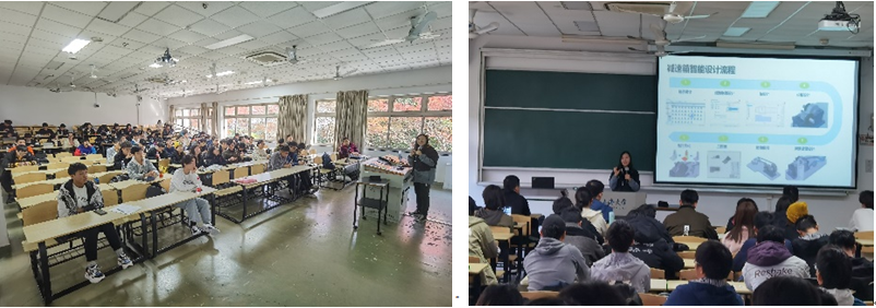 11月27日,我院精密机械系在马文静、陈勇老师的组织下,给学生来了一场精彩的学术讲座《人工智能时代机械设计方法的创新》,讲坐邀请到AUTODESK公司教育解决方案陈文君经理,陈文君女士有多年制造业相关经历,曾为超百所制造型企业提供专业的数字化设计解决方案,现于浙江大学,同济大学,哈尔滨工业大学等高校担任企业导师。近百名学生参加了这次学习活动,了解到业内最先进的技术发展现状,同学们对未来制造充满遐想和激发了学习的热情。