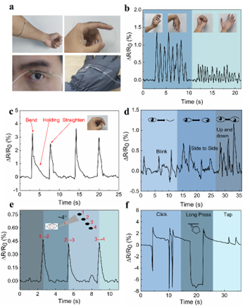 图1. 纤维状柔性应变传感器应用于人体微运动监测