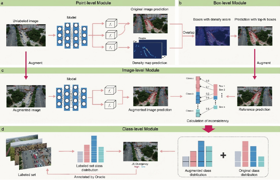 2、 Haohao Hu†, Tianyu Han†, Yuerong Wang, Wanjun Zhong, Jingwei Yue*, Peng Zan*. Hierarchical Active Learning for Low-altitude Drone-view Object Detection, International Journal of Computer Vision, 133(2): XXXX-XXXX, 2025.(SCI&EI收录: 001312706500001,20243817059302,JCR一区,中科院二区,IF: 11.6)Published Online, DOI: 10.1007/s11263-024-02228-y