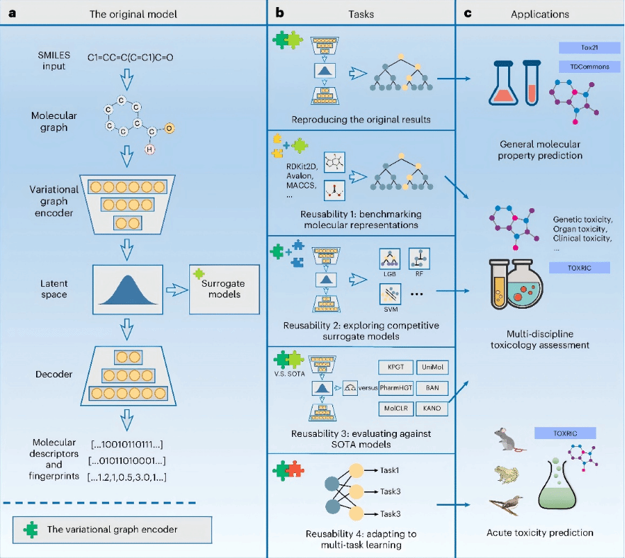 1、 Ruijiang Li†, Jiang Lu†, Ziyi Liu†, Duoyun Yi, Mengxuan Wan, Yixin Zhang*, Peng Zan*, Song He*, Xiaochen Bo*. Reusability Report: Exploring the utility of variational graph encoders for predicting molecular toxicity in drug design, Nature Machine Intelligence, 6(12): 1457-1466, 2024.(SCI&EI收录: 001350189200001, 20244617369156, JCR一区,中科院一区TOP, IF: 18.8)DOI: 10.1038/s42256-024-00923-6