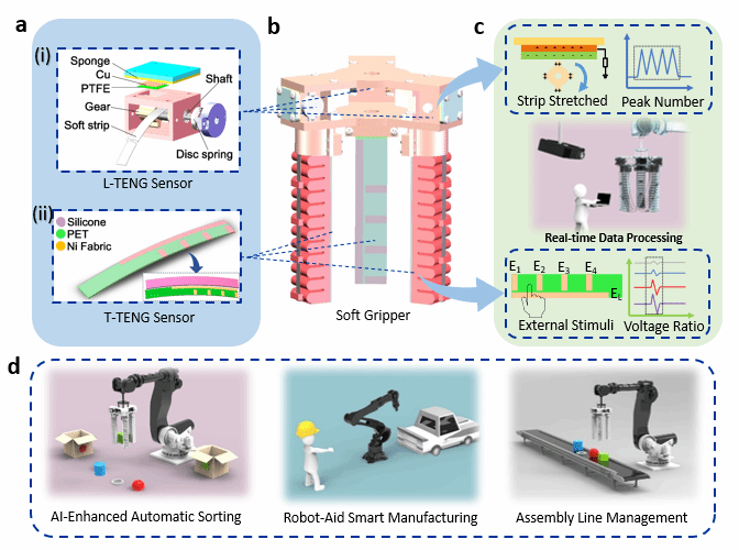 图1 基于摩擦纳米发电的智能感知柔性机器人技术《Nature Communication》发表