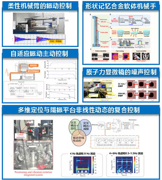 从事机电系统动力学、先进智能控制、振动分析与控制、智能材料驱动器等方面的研究;在柔性机械臂的振动控制、形状记忆合金软体机械手、自适应振动主动控制、原子力显微镜的噪声控制、多维定位与隔振平台非线性动态的复合控制等方面取得系列成果;攻克了柔性结构大幅振动抑制、软体驱动器的快速响应、迟滞强非线性补偿等关键技术,实现了精密载荷的超高稳定性超高精度控制、驱动-结构-传感-控制一体化系统的开发;主持及参与国家自然科学基金项目、科技部国家科技计划项目、国防科技基金项目、上海市基金项目等近10项;发表高水平论文20余篇;获发明专利8项。